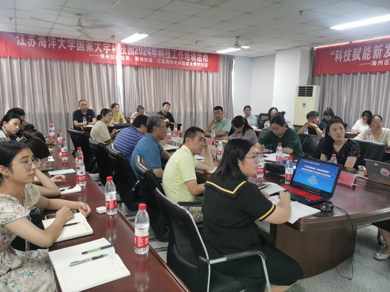 活动中,在园企业针对科技型中小企业申报和技术合同登记中存在的问题,与海州区科技局、新南街道及专业服务机构进行了咨询交流及现场指导。