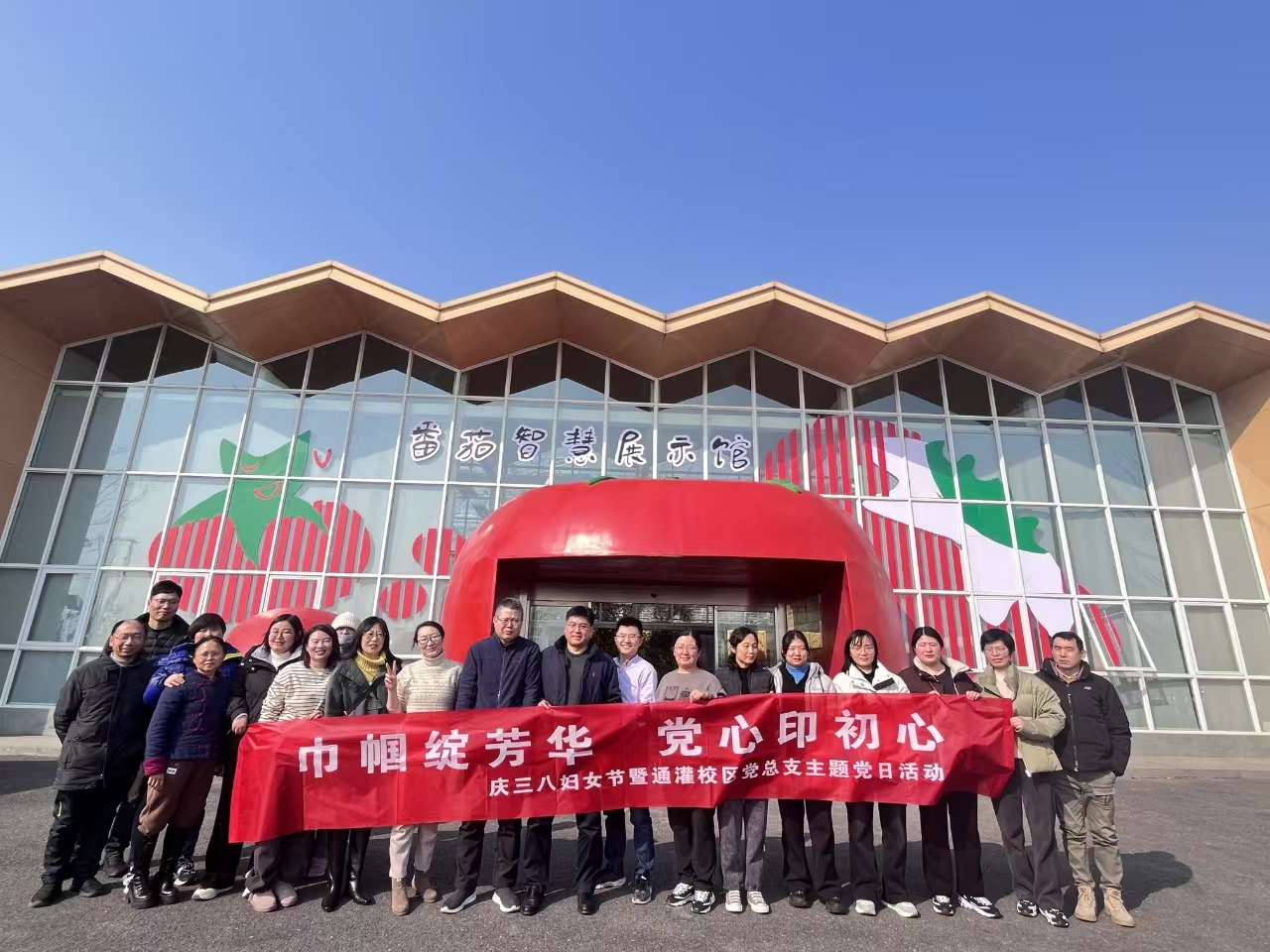为庆祝第113个“三八”国际妇女节,丰富大学科技园成员的精神文化生活,展现女教职工昂扬向上的风采,3月6日,大学科技园党支部组织全体党员成员赴浦南镇草舍村番茄庄园,开展“巾帼绽芳华 党心印初心”主题党日活动,将党建活动与乡村振兴、高效农业创新园区、劳动教育深度融合。