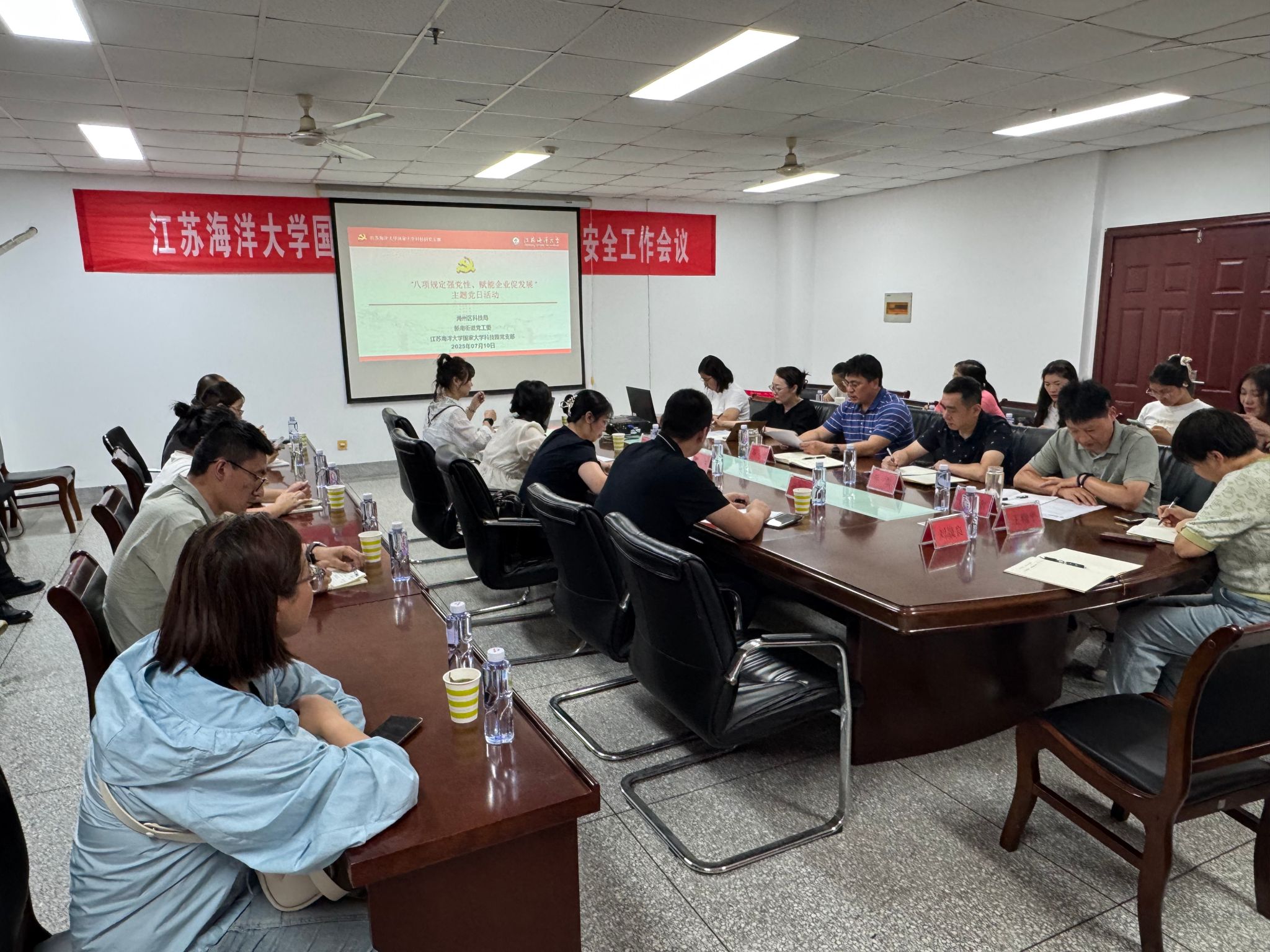 为深入贯彻落实习近平总书记关于实施创新驱动发展战略,实现高水平科技自立自强思想,进一步促进园内企业高质量发展,7月10日下午,大学科技园党支部与海州区科技局、新南街道党工委联合开展“八项规定强党性,赋能企业促发展”主题党日活动。海州区科技局、新南街道科技工作相关科室负责人,连云港乐诚信息科技有限公司、大学科技园党支部全体党员及在园企业负责人参加了活动。