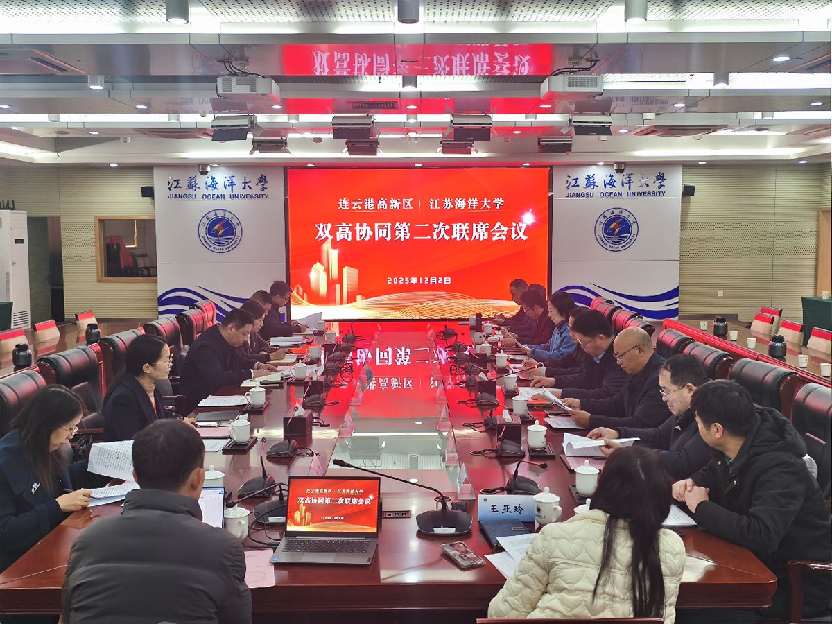 江苏海洋大学与连云港高新技术产业开发区召开“双高协同”第二次联席会议暨企业需求对接会,总结合作成效,对接企业需求,共商深化校地协同举措。江苏海洋大学校领导、连云港高新区领导及相关单位负责人出席会议。